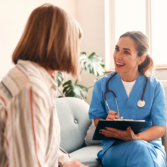 Our clinician arrives at your home at a scheduled time, reviews your medical history, symptoms, vital signs, and concerns.